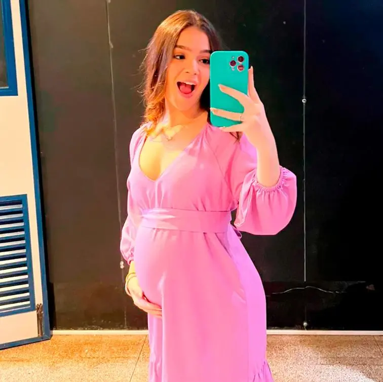 A atriz Mel Maia apareceu, na segunda-feira (3), nos Stories com uma barriga de grávida nos bastidores de gravação da novela “Vai na Fé”, devido ao novo momento da personagem dela, Guiga.