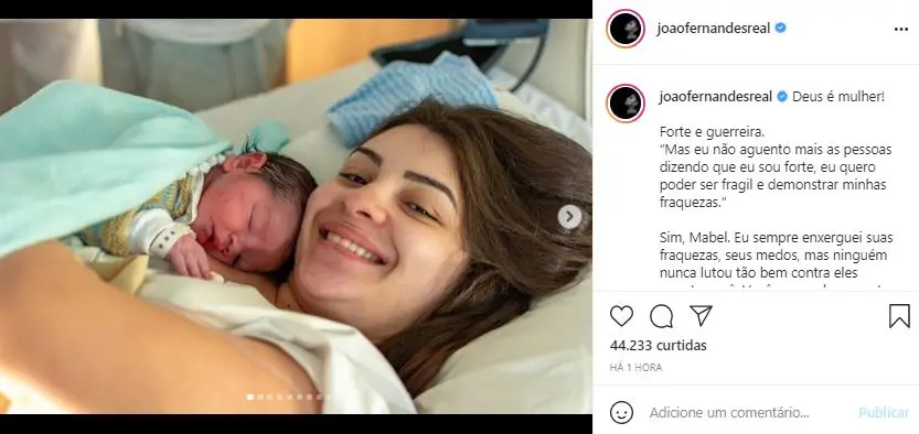 Além dela, João Fernandes também usou as redes sociais para se despedir da ex-mulher. Apesar do filho juntos, os dois estavam separados oficialmente desde 2020.