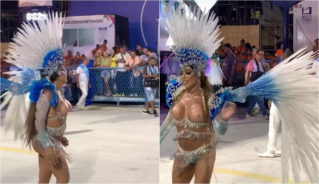 "Vocês sabem que eu esqueci parte da minha fantasia em casa. E eu tinha duas opções: não saía ou saía sem a parte da minha fantasia que tapava o bico dos meus seios. Saí. Não deixei meu marido saber antes porque ele ia tentar não deixar eu desfilar. Fui e tampei. Meus amigos falaram para não deixar ele saber, continuar com roupão e só tirar na Avenida. Tirei e não olhei para ele mais. Se não ia quebrar o clima. No dia seguinte, ele foi embora", comentou ela.