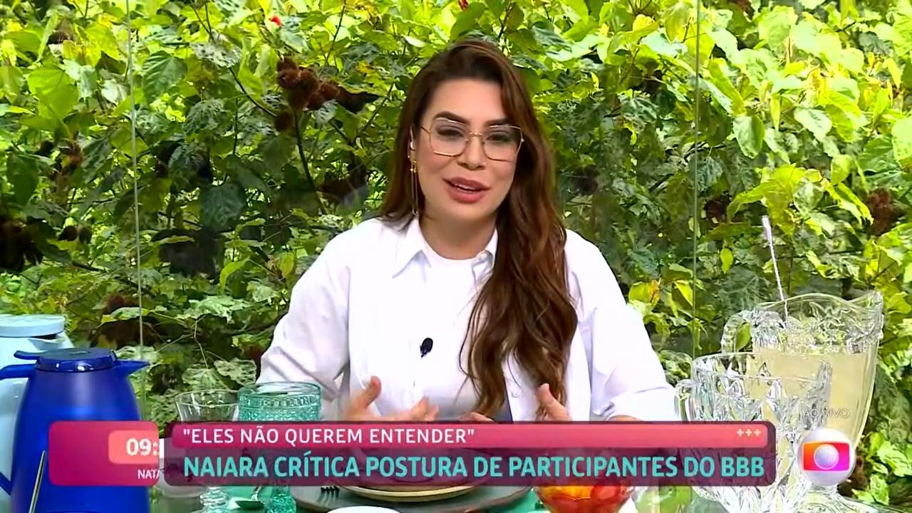A cantora Naiara Azevedo, eliminada no terceiro paredão do Big Brother Brasil (BBB) 22, participou do programa "Mais Você", na manhã de quarta-feira (9). Em bate-papo com Ana Maria Braga, ela falou sobre a dificuldade em conviver no reality e a crise de ansiedade que passou.