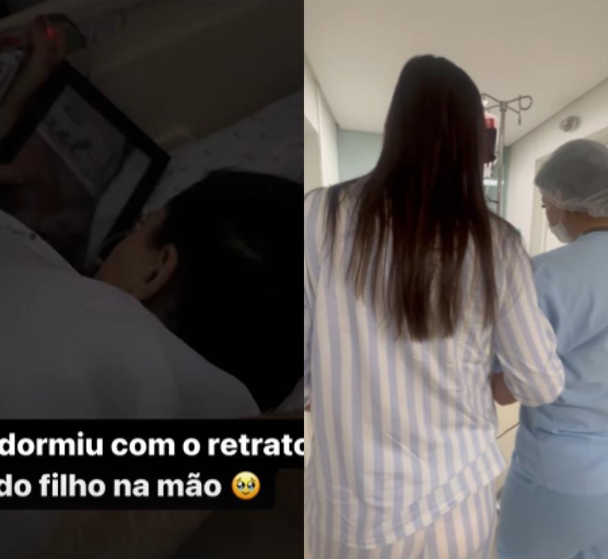 O influenciador fitness publicou novas fotos e vídeos sobre o processo de recuperação de Nara. Em um deles, a namorada dormiu segurando a foto do filho que não conheceu ainda. Na tarde desta sexta, Nara recebeu mais uma bolsa de sangue. O influenciador também publicou um vídeo de Nara andando no hospital.