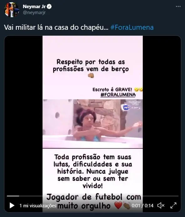 Em outra crítica relacionada a Lumena, por exemplo, ele chegou a citar a declaração da psicóloga sobre os jogadores de futebol ao publicar vídeo da declaração da baiana.