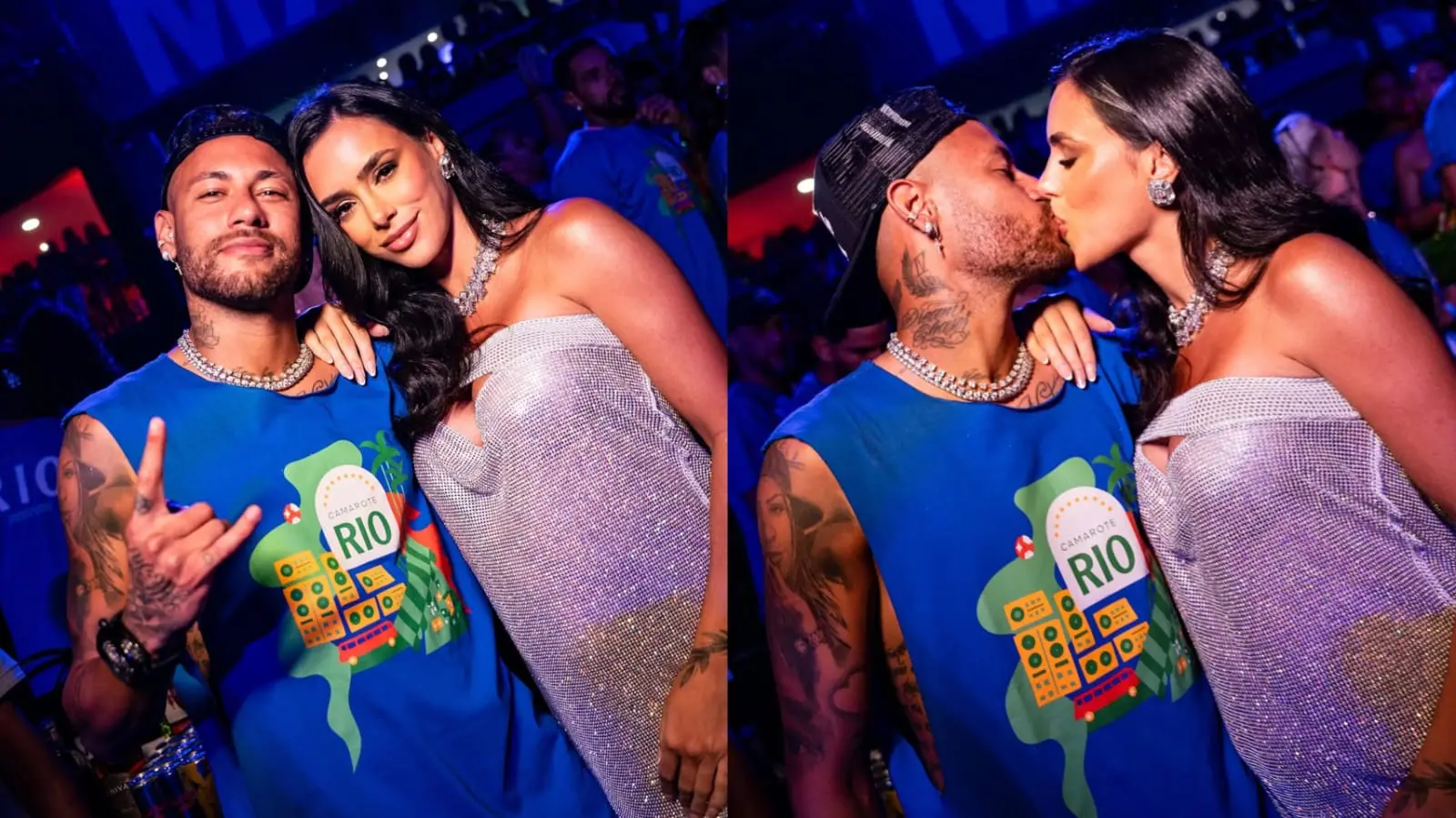 Neymar e Bruna Biancardi trocam beijos e curtem desfiles na Sapucaí, no Rio de Janeiro