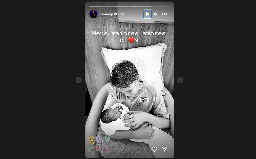 "Meus maiores amores", publicou Neymar, que foi liberado pelo seu clube, o Al-Hilal, da Arábia Saudita, para viajar ao Brasil para conhecer a filha que teve com a digital influencer Bruna Biancardi.