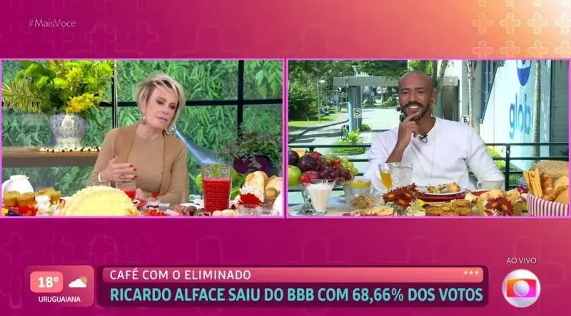 Após eliminação na noite dessa quinta-feira (20) no Big Brother Brasil 23, Ricardo Camargo, conhecido como “Alface”, foi o convidado da vez do quadro “Café com Eliminado”, do programa Mais Você, com Ana Maria Braga.