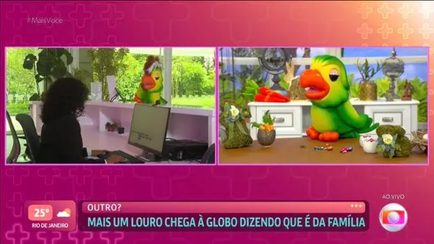Com um moicano na cabeça, a nova ave questionou a identidade do papagaio que já havia sido acolhido pela apresentadora e disse ser o verdadeiro filho de Louro. "Meu pai era torcedor roxo do Corinthians", alegou ele quando questionado sobre o papagaio icônico do 'Mais Você'.