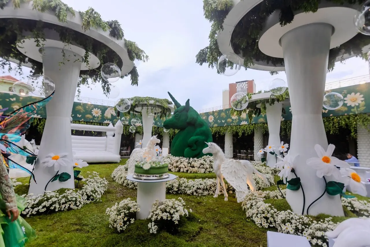 Nutricionista transforma clube cearense em jardim encantado para aniversário da filha e festa viraliza no TikTok