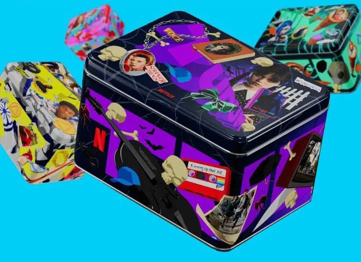 Ao todo, são disponibilizadas quatro latas tematizadas com produções originais da plataforma. Dentro delas, estarão brindes exclusivos, como bonecos colecionáveis, pins, cartões, adesivos 3D e metálicos, ímãs e pôsteres.