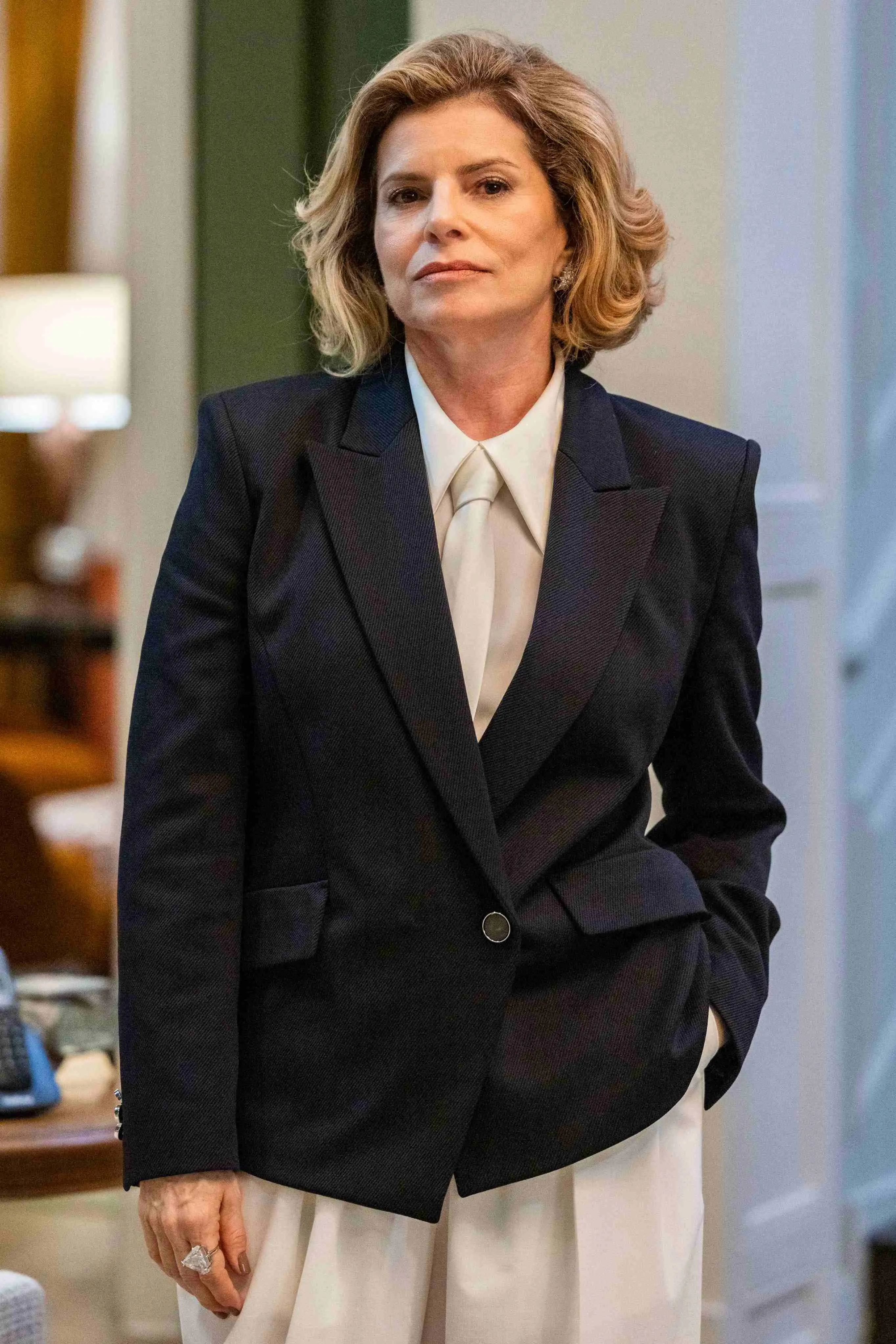 A empresária Odete Roitman, vivida por Debora Bloch, faz sua primeira aparição na nova versão da novela "Vale Tudo" neste sábado (26), dia em que a TV Globo completa 60 anos. A personagem retorna ao Brasil sem avisar, enviando suas malas para a casa da irmã, Celina (Malu Galli), mas informa por telefone que não ficará hospedada no local.