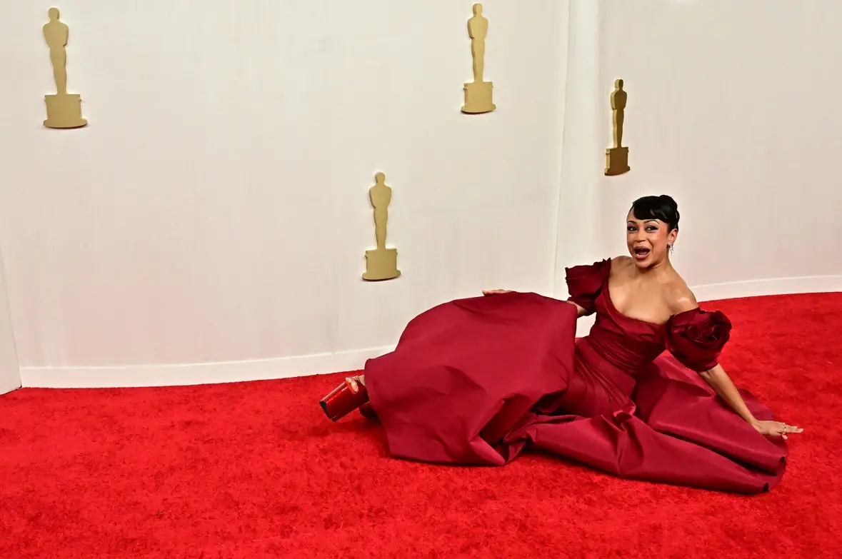 Os convidados já começam a chegar para a 96ª edição do Oscar 2024 neste domingo (10). No tradicional tapete vermelho da cerimônia, a atriz e comediante Liza Koshy já deu o que falar após levar um tombo em frente aos fotógrafos.