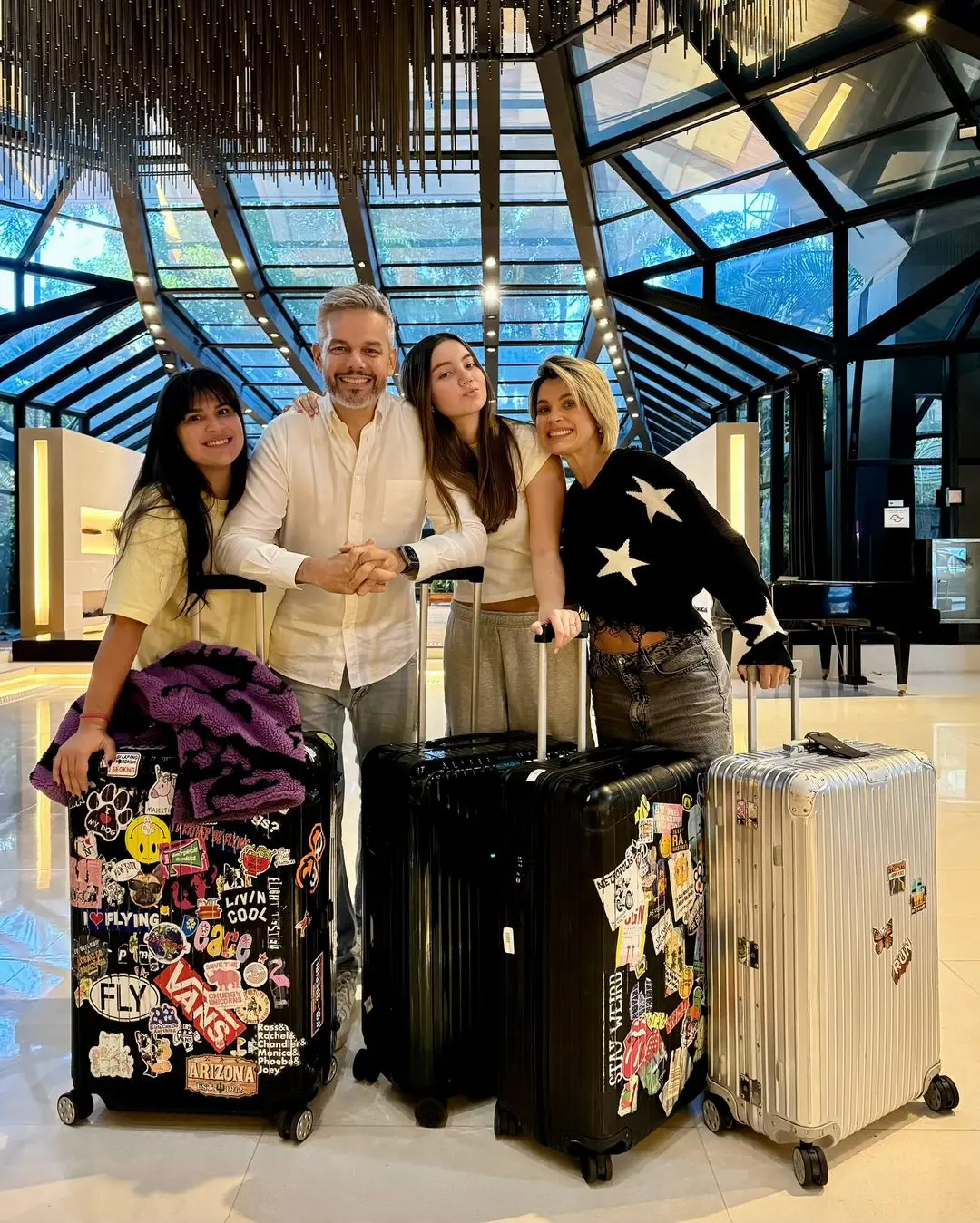 Nas redes sociais, ele compartilhou uma foto no aeroporto, ao lado da esposa Flávia Alessandra, da filha, Olívia, e da enteada, Giulia Costa.