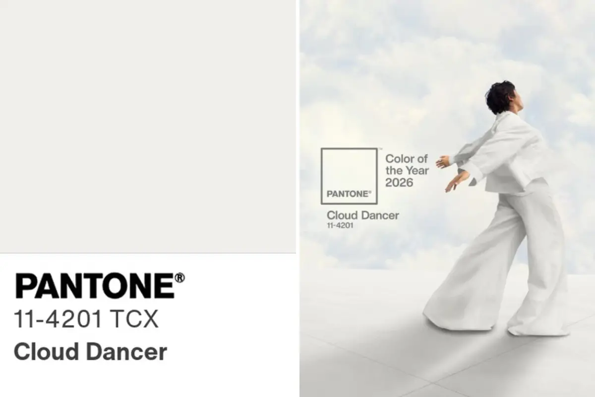 Os analistas de tendências da Pantone escolheram o "Cloud Dancer" como Cor do Ano de 2026. O tom foi descrito como um neutro branco elevado. Para eles, a "presença arejada funciona como um sussurro de calma e paz em um mundo barulhento".