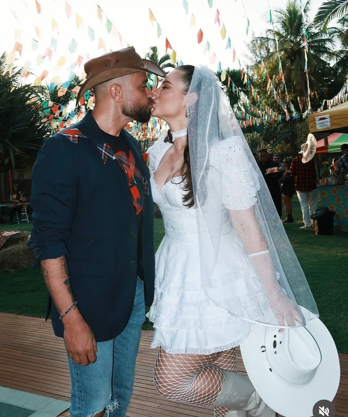 A atriz Paolla Oliveira se vestiu de noiva para celebrar uma festa junina junto ao namorado Diogo Nogueira. “Aos 45 do segundo tempo, mas veio aí”, disse Paolla nas redes sociais.