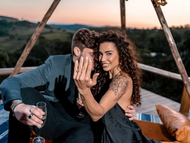 Paula Amorim, 32, anunciou na última segunda-feira (14) que ficou noiva de Breno Simões, 33. Os dois se conheceram durante participação no BBB 18 (TV Globo) e estão juntos desde então.