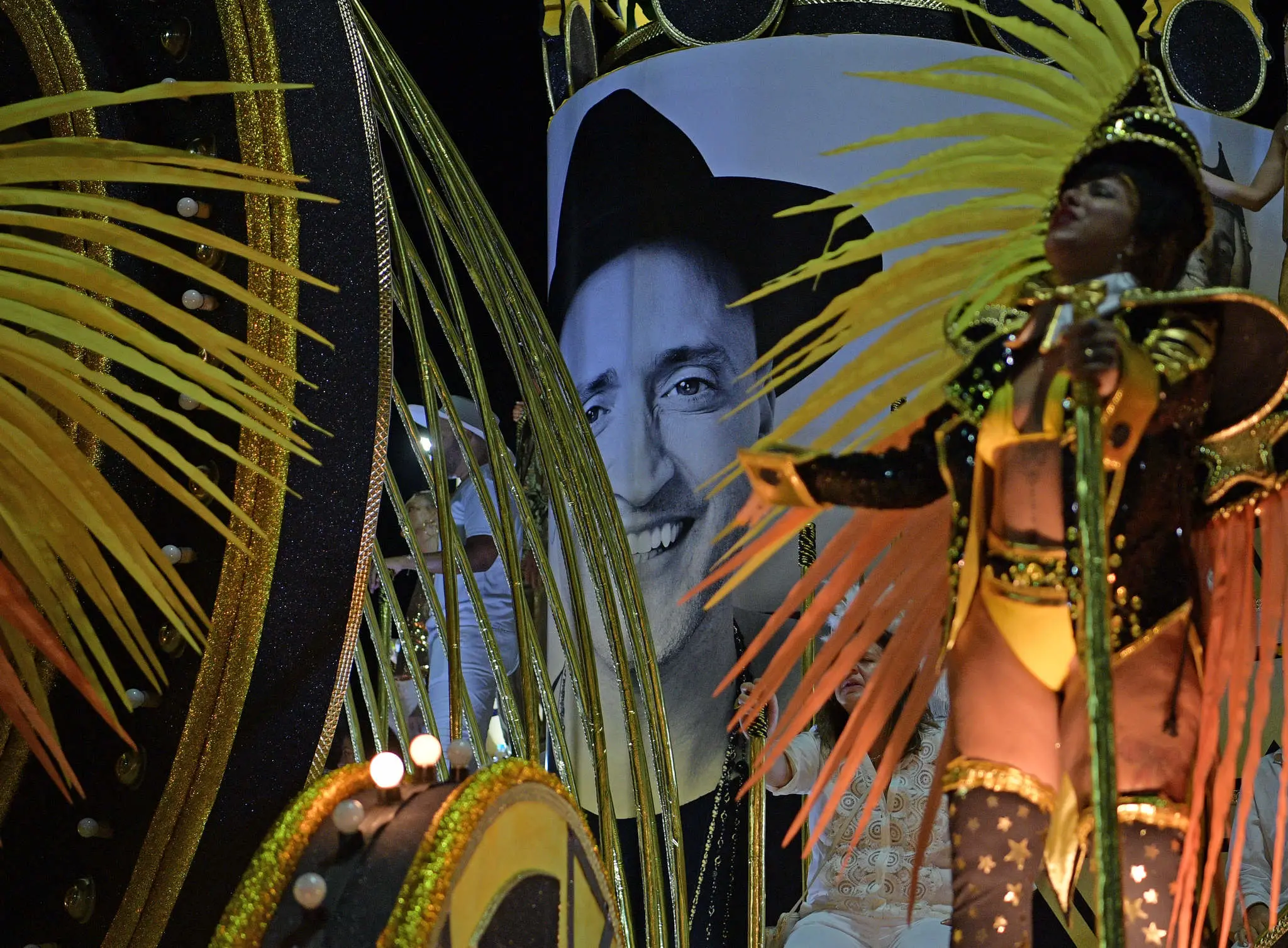Dona Déa Lúcia, mãe do ator, foi reverenciada pelo público das arquibancadas da Marquês de Sapucaí. Ela desfilou na comissão de frente da escola.