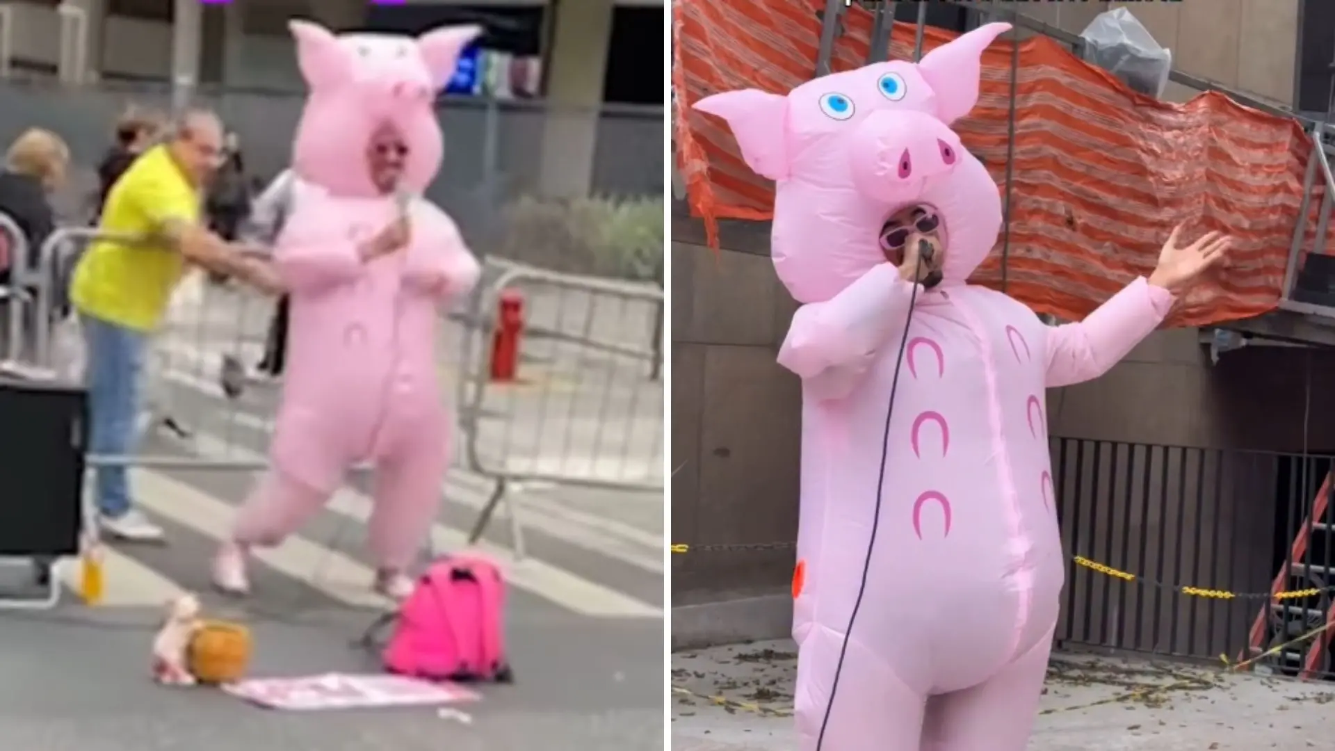 'Porquinho da Paulista' é atacado com garfo durante manifestações em São Paulo