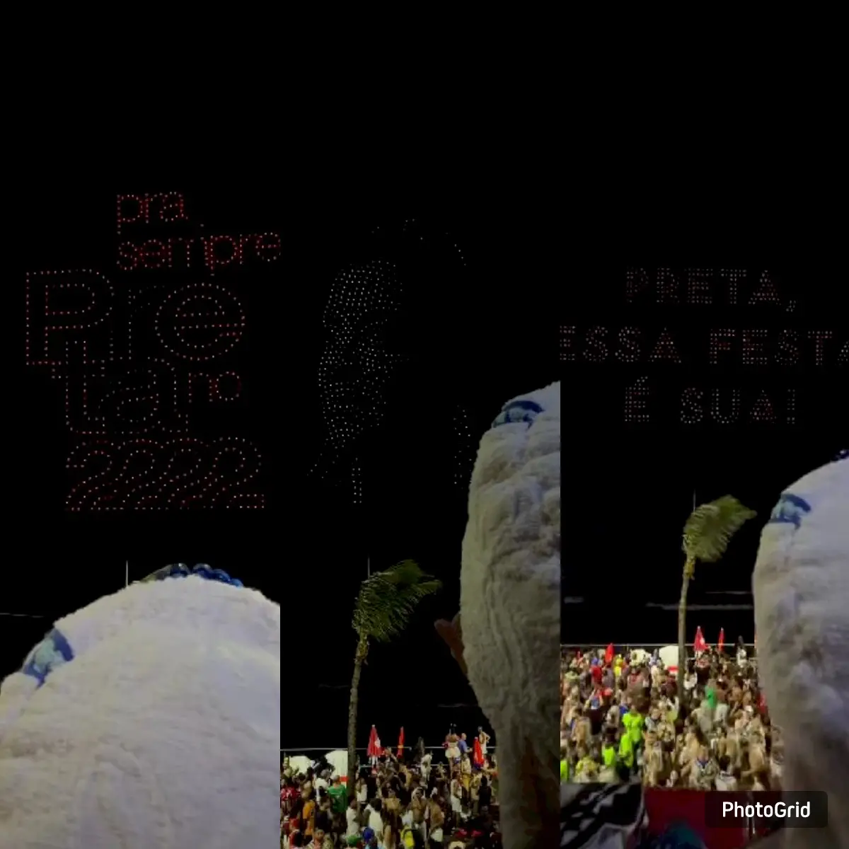 A ação da vez trouxe o rosto da cantora e a frase "Preta, essa festa é sua!", com um show de luzes dos drones. O espetáculo, montado por uma das patrocinadoras do camarote, foi pensado como forma de honrar o legado artístico de Preta.