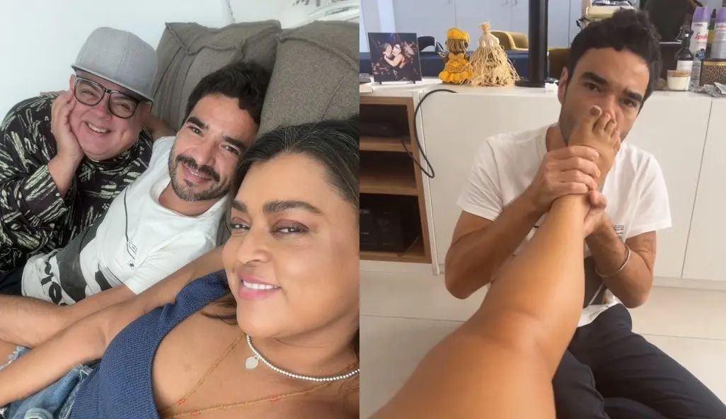 "O melhor massagista que tem", declarou Preta em rede social. Ao ouvir o elogio, o ator deu um beijo no pé da cantora.
