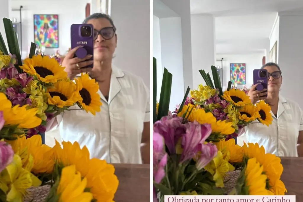 A cantora Preta Gil postou nesta sexta-feira (13) sua primeira foto no Instagram após revelar o diagnóstico de câncer no intestino. Na imagem, ela aparece mostrando flores que recebeu de amigos e agradeceu o apoio. "Obrigada por tanto amor e carinho”, escreveu na publicação feita nos stories.