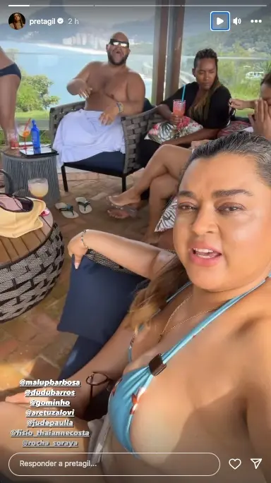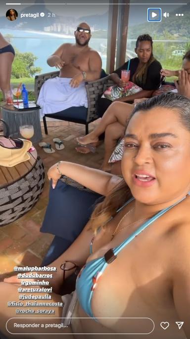 A cantora Preta Gil apareceu animada, em um vídeo publicado por ela, nesta sexta-feira (3), no Instagram. “Muito protetor solar! Estamos aqui… agora sim”, diz a artista nas imagens, onde é possível vê-la de biquíni azul com estampa para curtir a piscina.