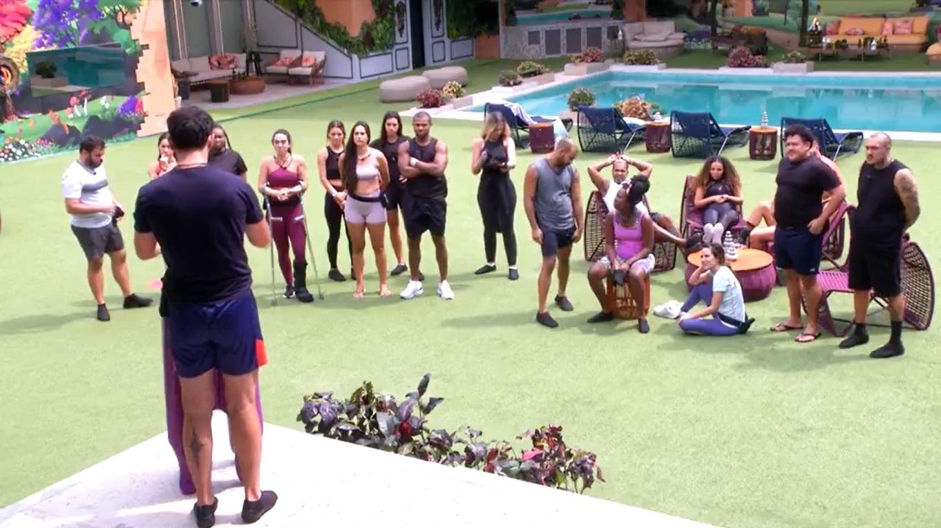 Para isso, sempre que a música tocar, eles devem ir para o gramado da casa e ficar de guarda. Além disso, cada um deles perdeu 300 estalecas e Pitel, que estava no Vip, foi para a Xepa.