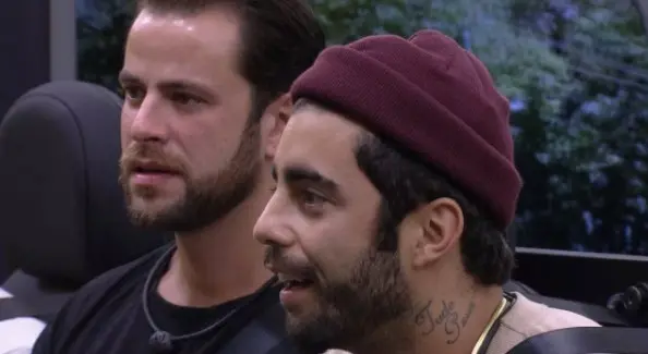Com todos reunidos na sala, após a festa comandada pela cantora Ludmilla realizada no sábado (9), o ator leu o anúncio do evento e convidou seus colegas de confinamento: Paulo André, Gustavo e Arthur Aguiar.