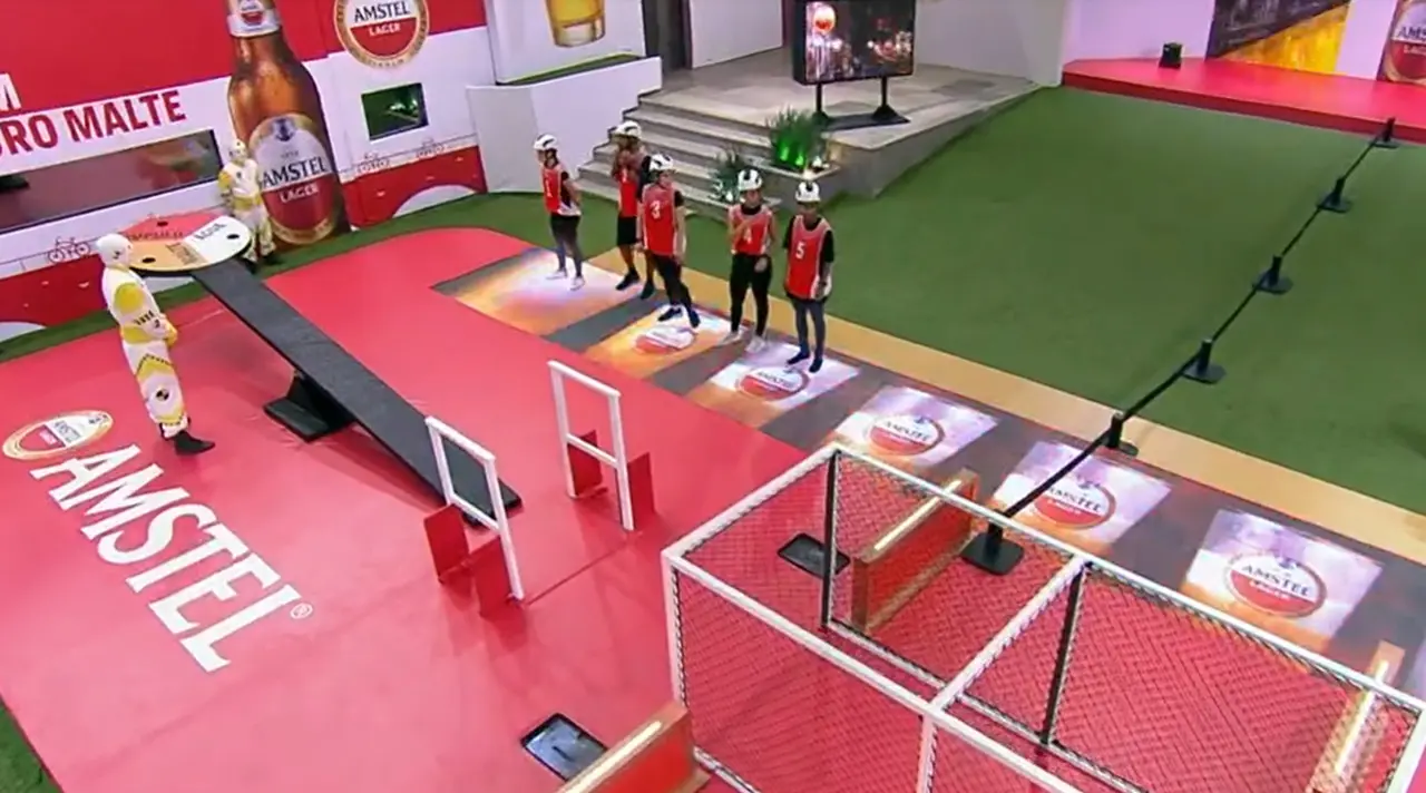 A prova envolveu agilidade e equilíbrio. Todos os participantes no game - Amanda, Aline, Bruna, Larissa e Ricardo - puderam participar.