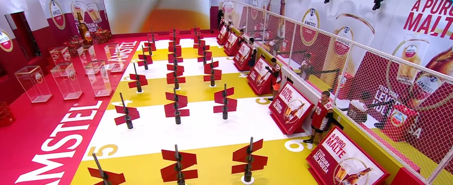 Primeiro foram separados dois grupos de seis integrantes. Com uma urna para cada grupo, fichas de um a seis, então, foram sorteadas com os números formando duplas a partir dos dois grupos. Já na prova, pelas regras, as duplas teriam que, numa primeira fase, montar um quebra-cabeça sem que um dos brothers não tivesse acesso ao gabarito. As peças estavam presas a parafusos fixos ao chão.