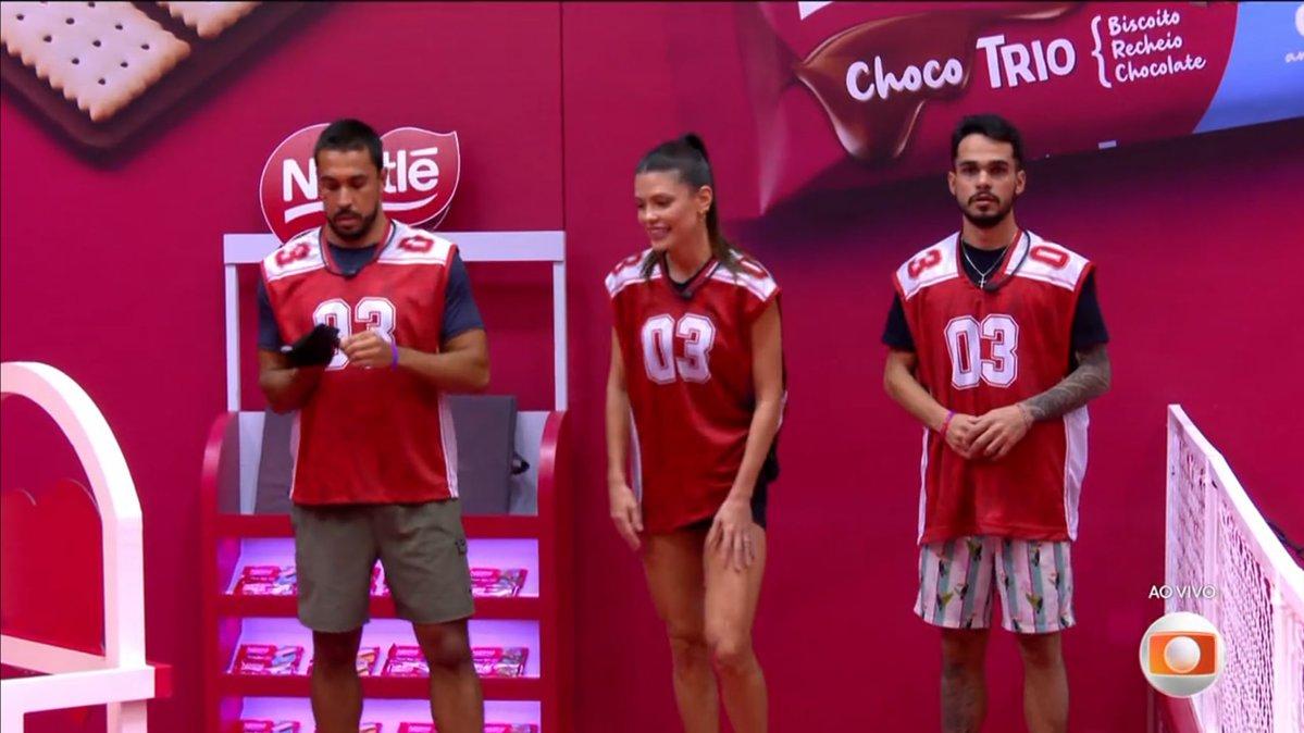 Em um primeiro momento, os confinados, da sala da casa, tiveram que sortear os trios que iriam participar do desafio pela liderança, retirando fichas numa urna.