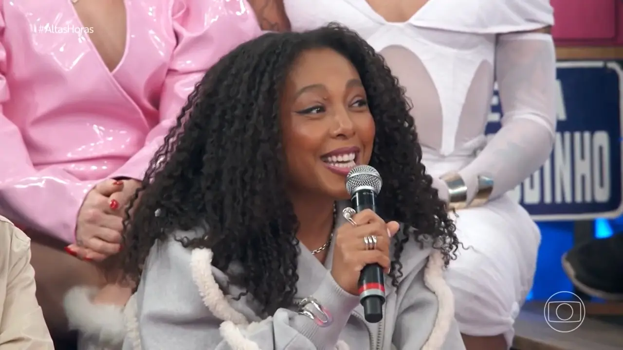 Na sequência, Negra Li citou Adriana Bombom, outra convidada do Altas Horas: "Só que aí entrou uma pessoa no programa... Quando vi aquela menina preta no programa da Xuxa... Ela tinha uma confiança, não tinha?"