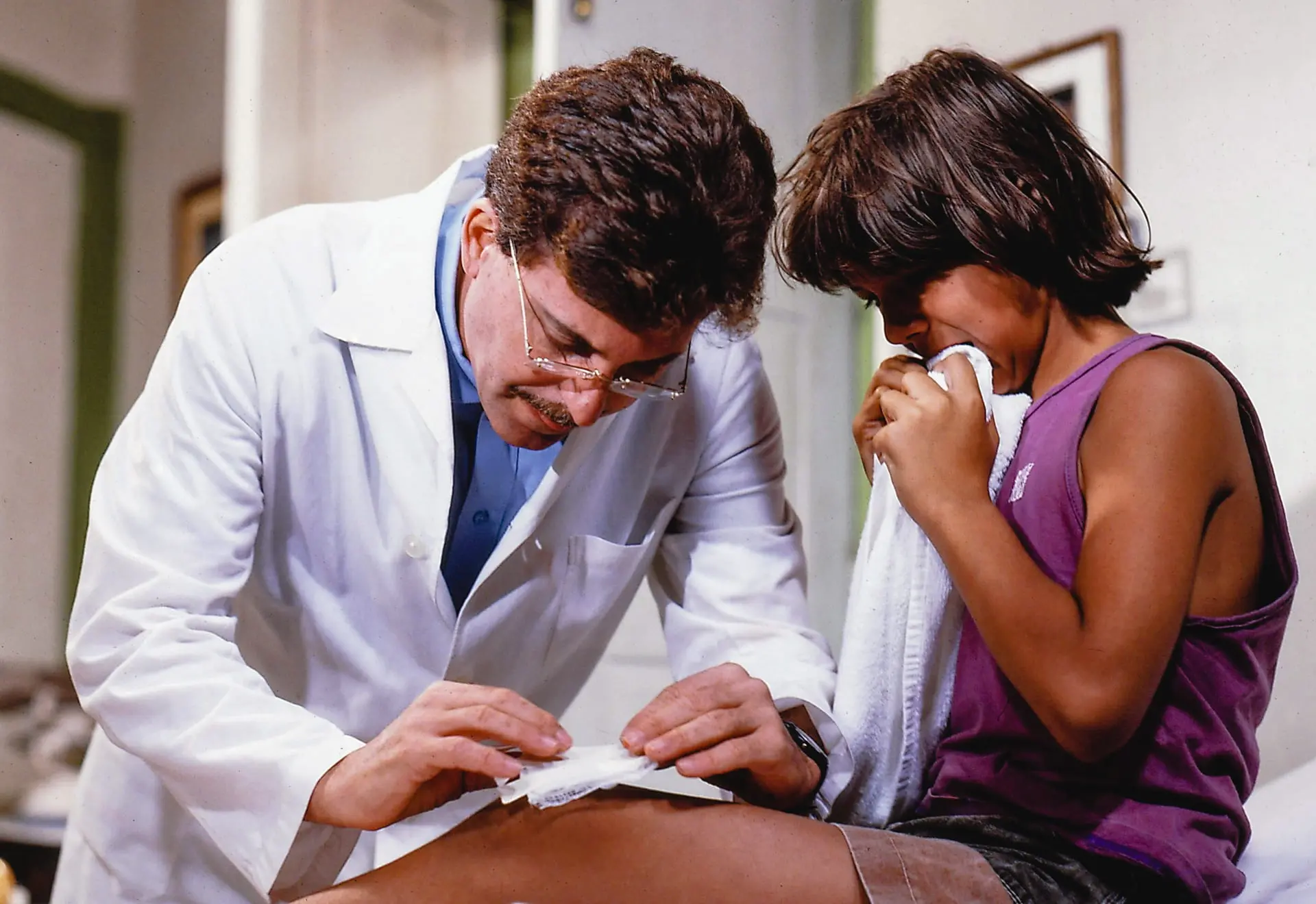 Após o prefeito Breno (Daniel Dantas) proibir o acesso dos turistas e moradores da cidade à praia, o menino nada no mar poluído e fica doente.