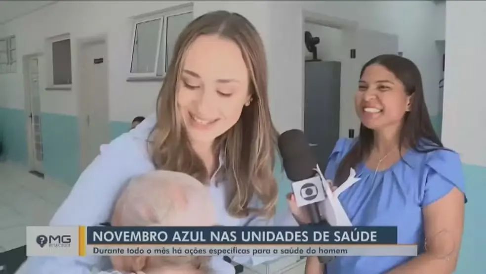 O gesto carinhoso da idosa foi exibido enquanto a diretora comentava sobre as ações que serão promovidas na rede municipal durante a campanha Novembro Azul, para o jornal local MG1.