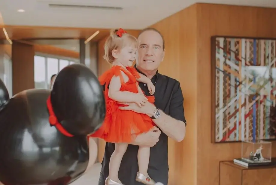 Empresário surgiu ao lado da neta, Stella, durante aniversário de dois anos da menina