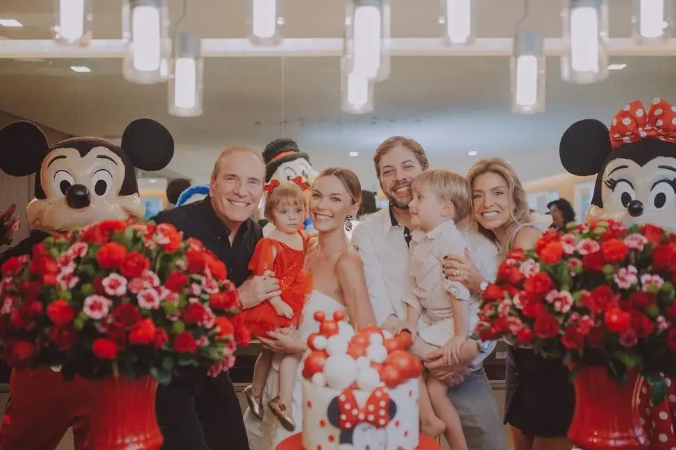 "Dois aninhos da minha netinha Stella. Meiguinha e lindinha do vovô!", celebrou ele. Além da foto com a criança, ele também apareceu ao lado do filho, Ricardo, da nora, Fran Fischer, e da ex-mulher, Sacha Chryzman.