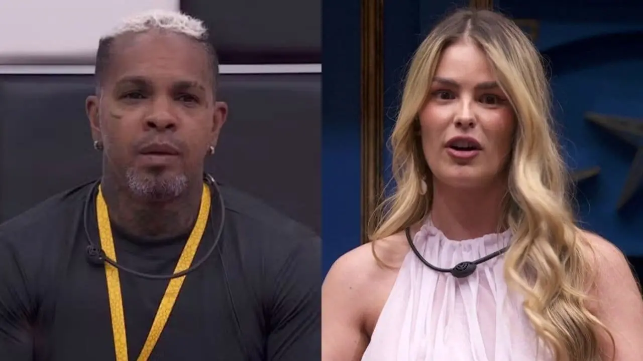 "Você vai pedir, aí depois vai estar lá 'Yasmin, despensa' e vai ter uma mordaça", disse o cantor logo após a modelo dizer que iria pedir uma conversa com a psicóloga para falar sobre a compulsão.