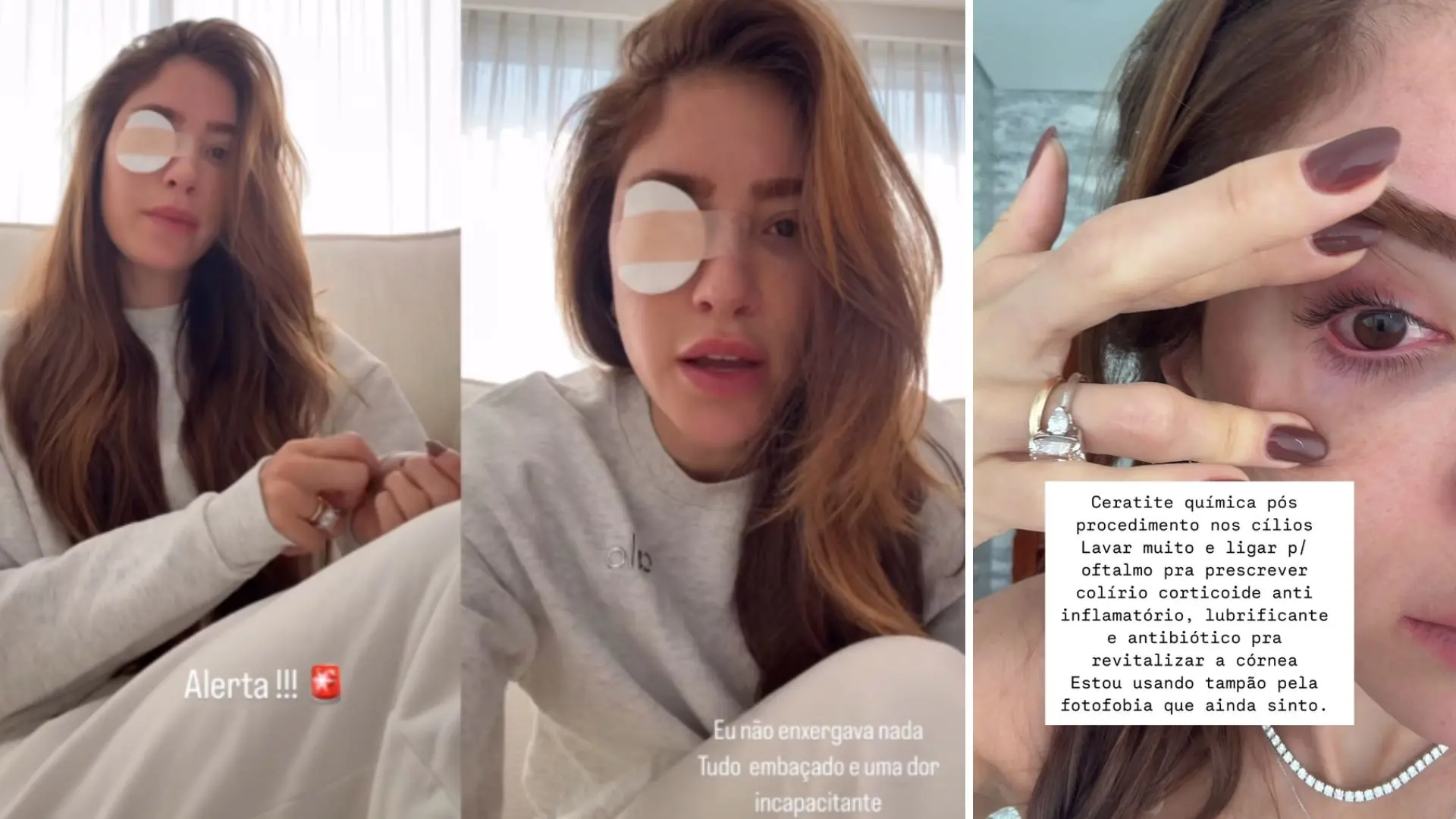 Segundo o relato de Romana, ela já estava acostumada a realizar a técnica nos cílios e nunca teve reações adversas. O susto veio no dia seguinte ao procedimento. "Quando cheguei, lavei o rosto, fiz o skin care para dormir. Mas, no sábado, quando acordei e abri o olho, eu não enxergava nada. Absolutamente nada", declarou a influenciadora.
