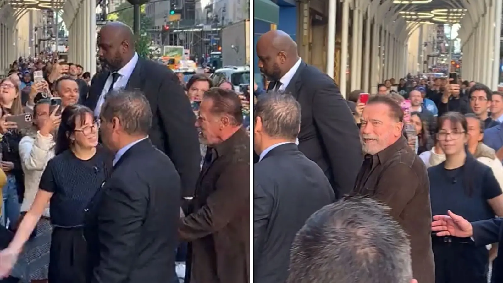 Segurança de Arnold Schwarzenegger viraliza pela altura em relação ao ator; veja vídeo