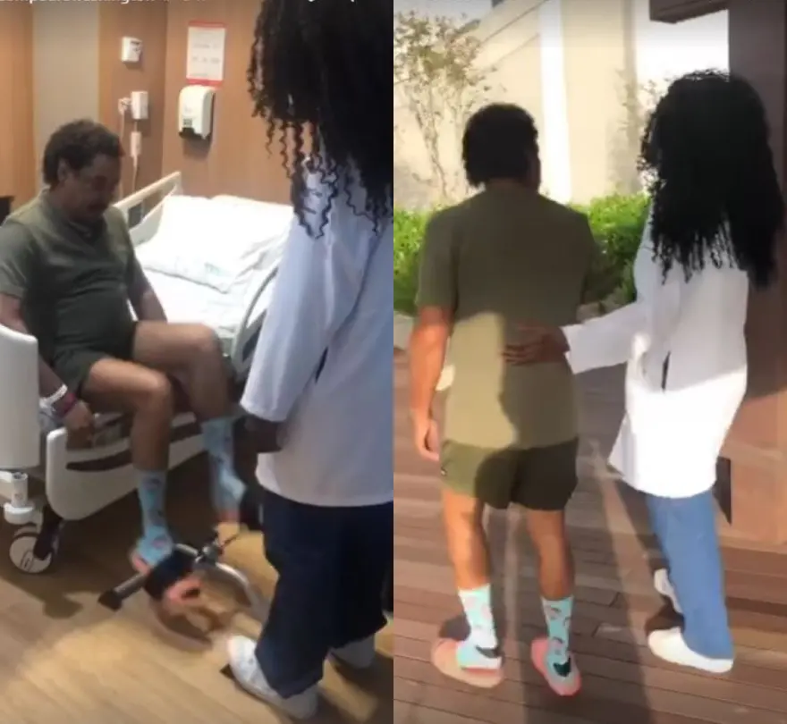 Na última quinta-feira (29), Compadre Washington recebeu alta da Unidade de Terapia Intensiva (UTI) e já estava caminhando no Hospital.