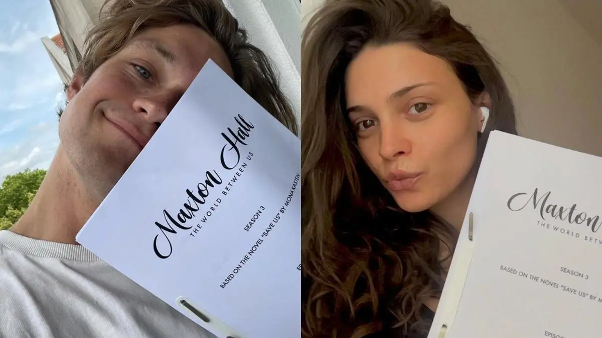 A terceira temporada da série "Maxton Hall: Um Mundo Entre Nós" foi confirmada pelo Prime Video na manhã desta segunda-feira (9). Nas redes sociais, os atores que dão vida a James e Ruby, Damian Hartung e Harriet Herbig-Matten, compartilharam imagens segurando o roteiro da próxima temporada.