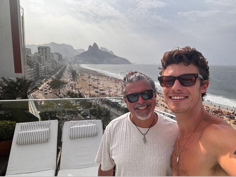 O cantor Shawn Mendes publicou, neste sábado (21), um registro ao lado do pai, Manuel Mendes, no qual os dois aproveitam a paisagem do Rio de Janeiro. O canadense está na cidade para o show que realizará no último dia do Rock in Rio, neste domingo (22).
