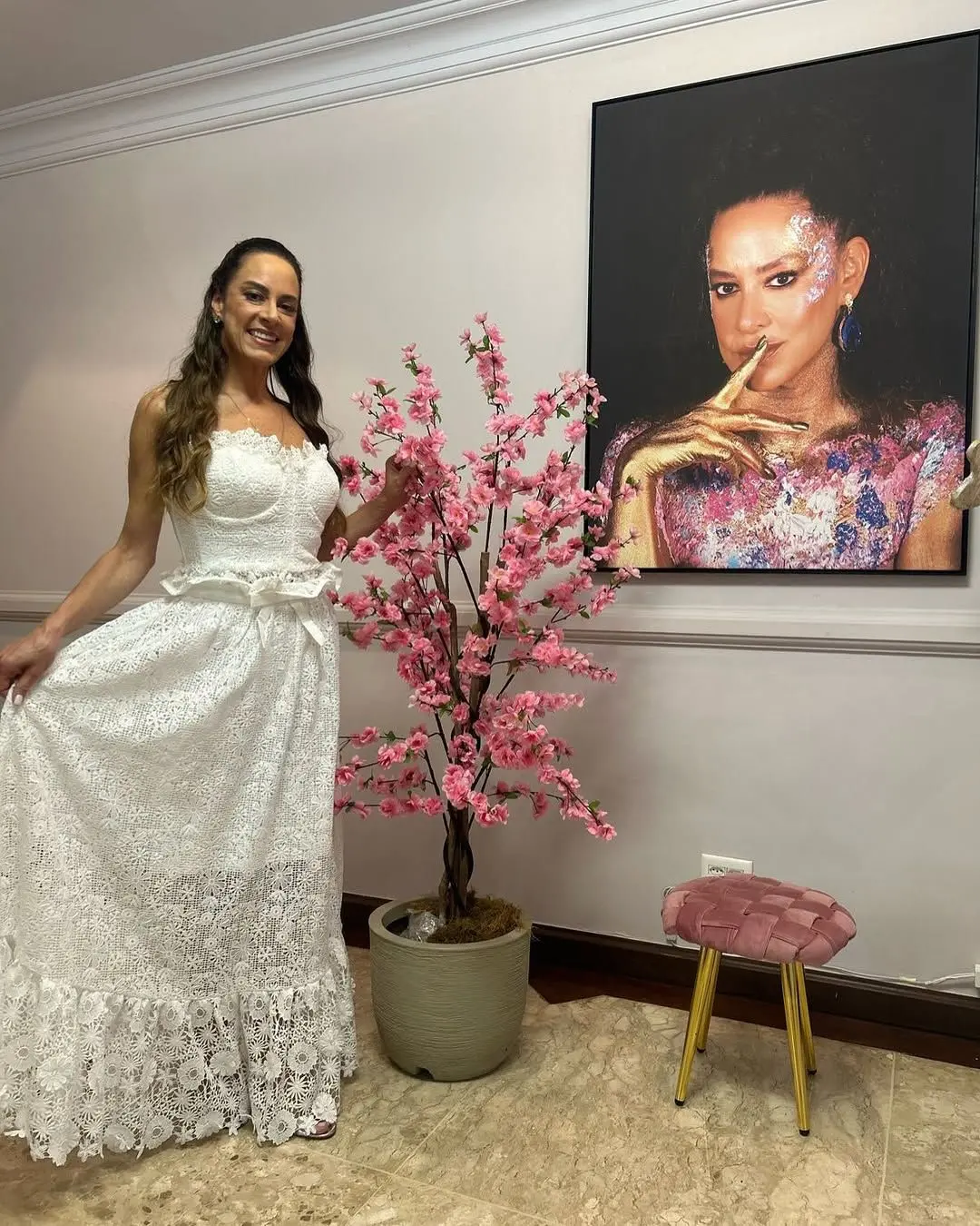 A artista publicou fotos no Instagram de seu vestido de noiva, e celebrou a mudança do estado civil: “Cá estamos eu e meu amor, casados pela vontade somente Dele”, escreveu na legenda das imagens.