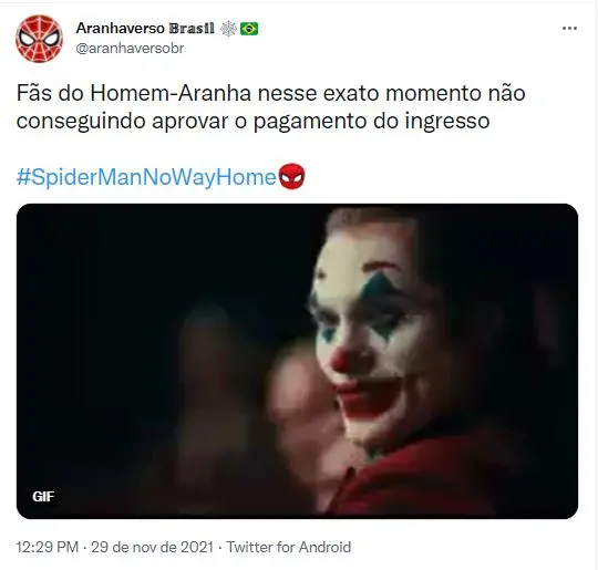 As vendas antecipadas para "Homem-Aranha: Sem Volta para Casa", que estreia em 16 de dezembro no Brasil, iniciaram nesta segunda-feira (29). Por causa do número de acessos nos sites que disponibilizam a entrada nas salas de cinema, alguns deles apresentaram instabilidades e ficaram fora do ar.