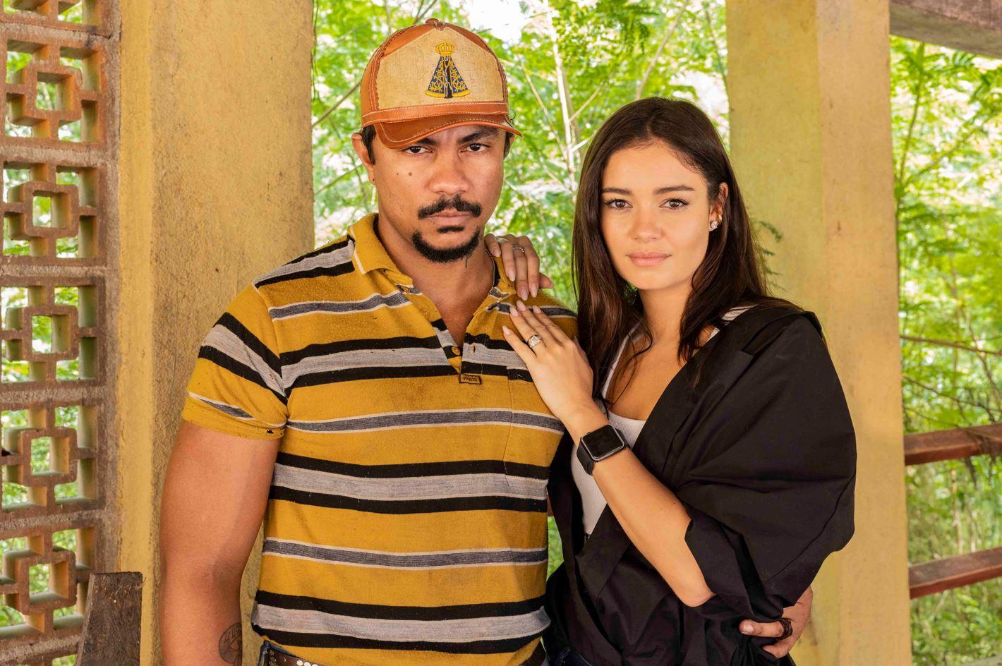 Sophie e Xamã interpretam o casal Eliana e Damião, respectivamente, na novela "Renascer", da TV Globo. Eles se conheceram durante as gravações.