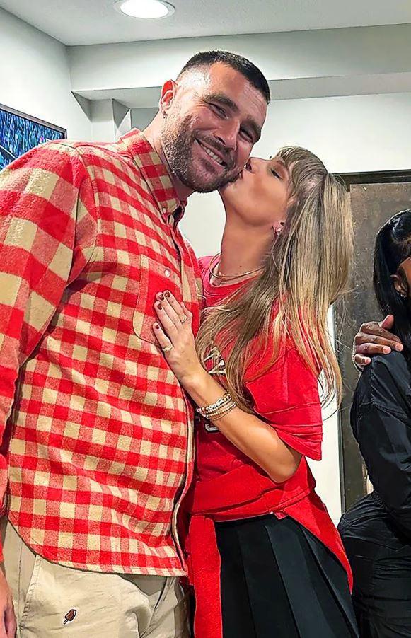 Taylor Swift comemora vitória de Travis Kelce com beijão no gramado