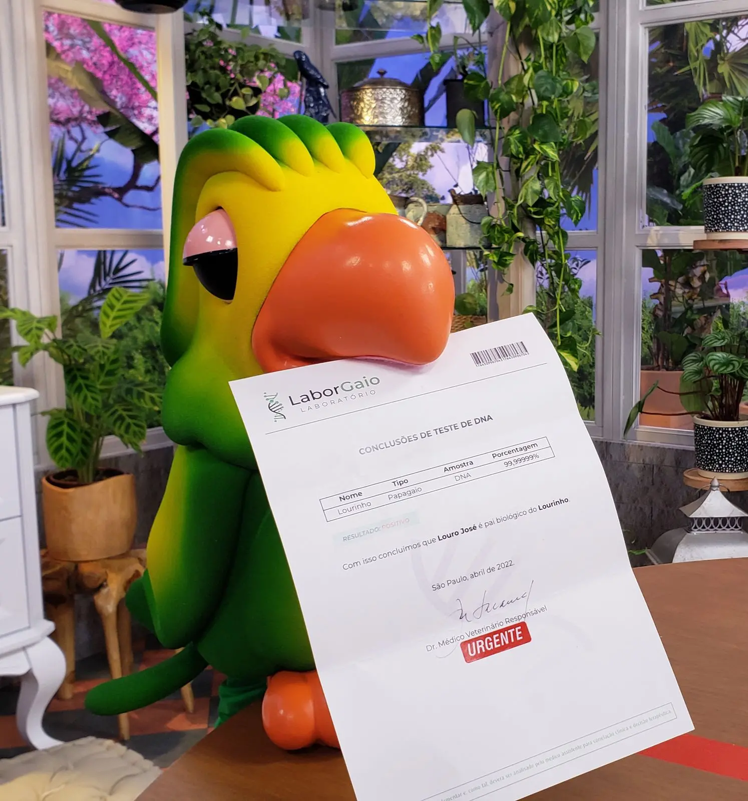 A dúvida sobre os papagaios filhos do Louro José chegou ao fim durante o 'Mais Você' na manhã desta quinta-feira (14). A ave, que foi em busca da avó Ana Maria Braga na portaria dos estúdios Globo, fez um teste de DNA e comprovou ser parte da família da apresentadora.