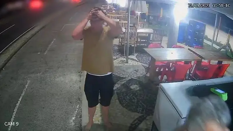 Imagens divulgadas nesse domingo (10) pela emissora mostram que Bruno demonstrou desespero ao notar o atropelamento, levando as mãos à cabeça, mas não se aproximou do local.