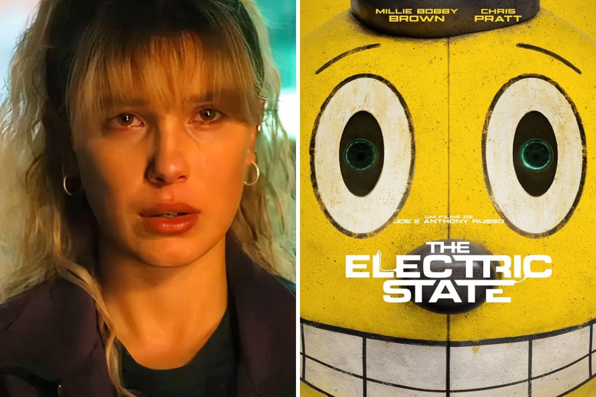 O filme "The Electric State" é ambientado em um passado alternativo e retrofuturista da década de 90. Nele, robôs e humanos estão em conflito. Michelle, a personagem de Millie Bobby Brown, é uma adolescente órfã que inesperadamente recebe a visita de um doce e misterioso robô chamado Cosmo. Ele parece ser controlado por Christopher, o irmão mais novo de Michelle, que ela pensava estar morto.