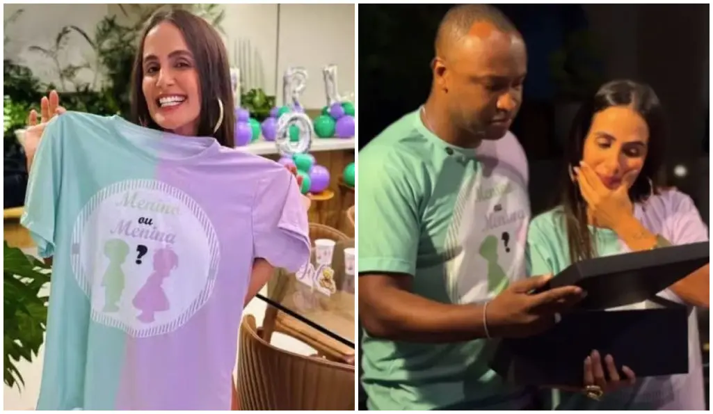 "Tem notícia boa dançando nos nossos corações… A gente já sabe quem está vindo por aí! O amor cresceu, se multiplicou, e agora tem nome. Estamos muito, muito felizes!", disse o texto compartilhado em conjunto pelo casal nas redes sociais.