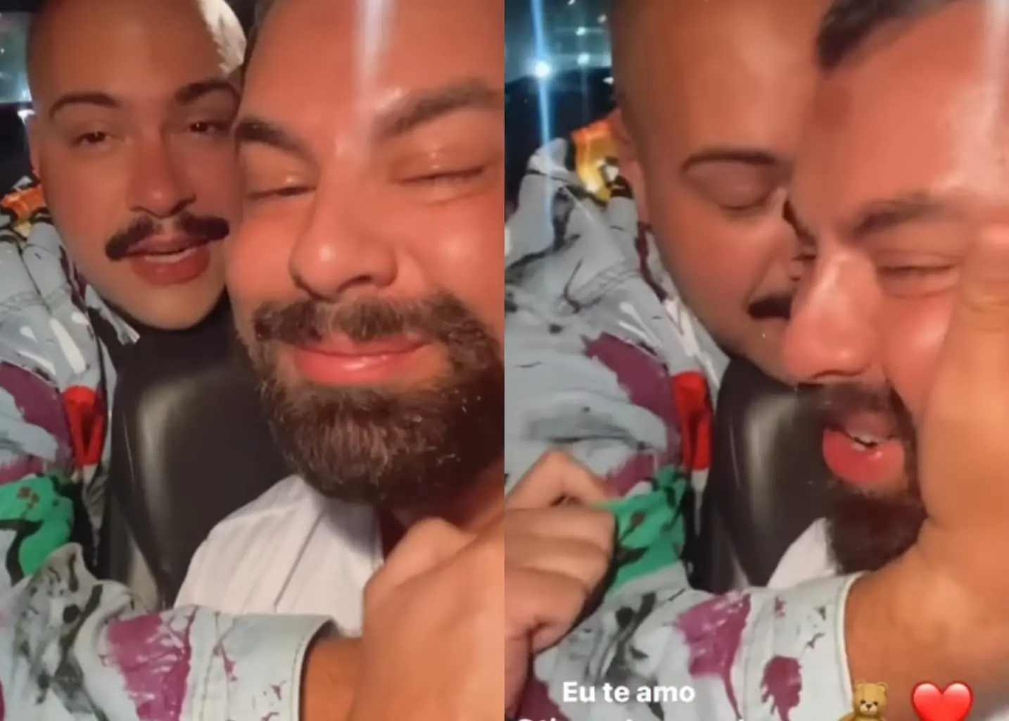 No Instagram, o casal mostrou a troca de beijos e carinhos em um vídeo postado por Fernando. "Não vou te largar nunca mais, eu te amo muito", declarou Tiago Abravanel.