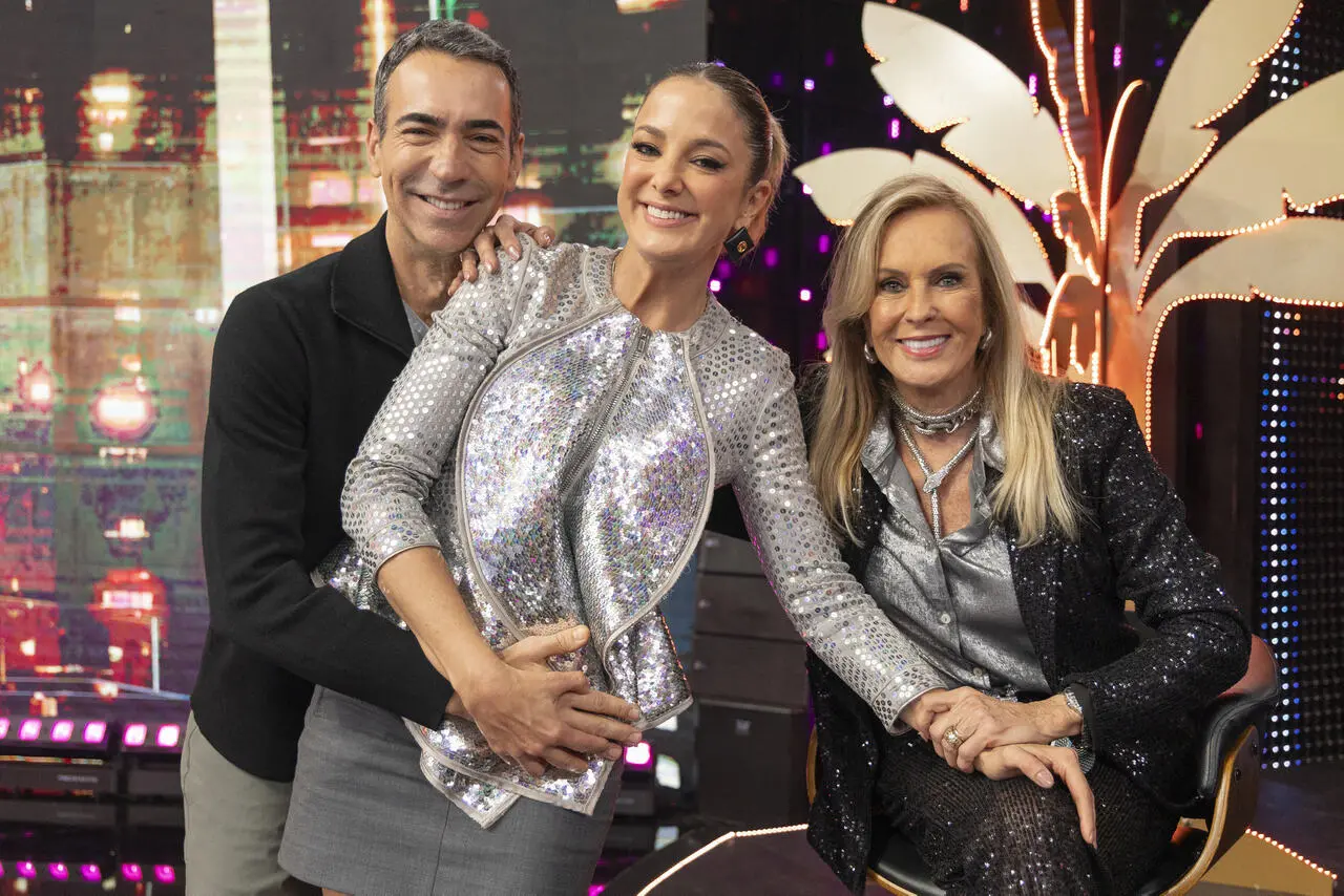 Ticiane Pinheiro participa do Domingão com Huck ao lado de César Tralli e Helô Pinheiro